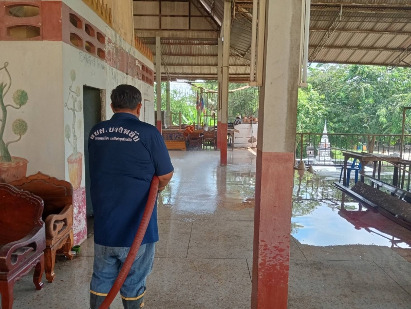 วันศุกร์ที่ 19 กันยายน 2568 เวลา 13.00 - 14.30น.เจ้าหน้าที่งานป้องกันฯ นำรถบรรทุกน้ำ ออกดำเนินการล้างเมรุ วัดท่าอิฐ ต.บางพลับ