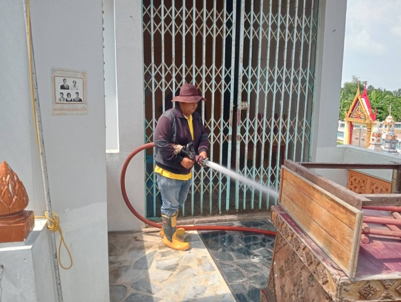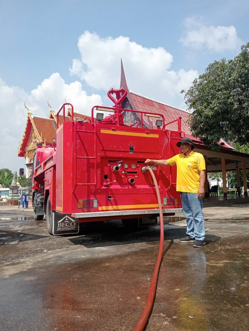 วันจันทร์ที่ 15กันยายน 2568 เจ้าหน้าที่งานป้องกันฯ นำรถบรรทุกน้ำ ออกบ้างเมรุ และพื้นลานปูนรอบเมรุ ณ.วัดบุญเกิด หมู่ที่ 3 ต.โพธิ์รังนก.