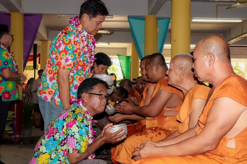 ร่วมกิจกรรมรดน้ำดำหัวขอพรผู้สูงอายุ และทำบุญเนื่องในวันสงกรานต์ของโรงพยาบาลส่งเสริมสุขภาพตำบลโพธิ์รังนก