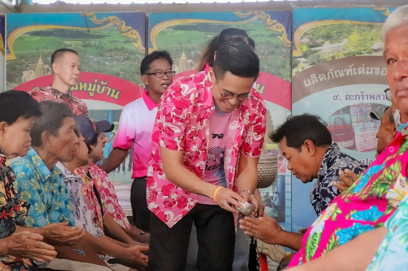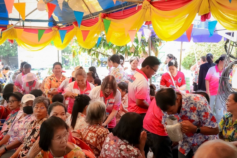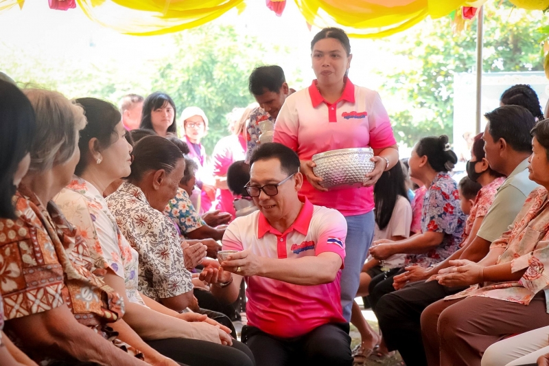 ร่วมกิจกรรมรดน้ำขอพรผู้สูงอายุ ณ.ศาลาสร้างสุข หมู่ที่ ๕ ต.บางพลับ อ.โพธิ์ทอง จ.อ่างทอง เพื่อเป็นขวัญกำลังใจให้กับผู้สูงอายุ และเพื่อความเป็นศิริมงคล เนื่องในโอกาสวันขึ้นปีใหม่ไทย เทศกาลสงกรานต์ ๒๕๖๙ นี้