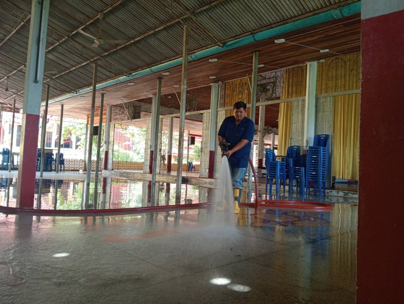 วันศุกร์ที่ 19 กันยายน 2568 เวลา 13.00 - 14.30น.เจ้าหน้าที่งานป้องกันฯ นำรถบรรทุกน้ำ ออกดำเนินการล้างเมรุ วัดท่าอิฐ ต.บางพลับ