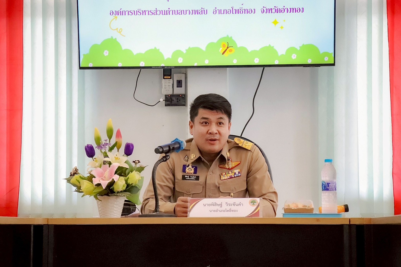 โดยมี นางสาวกันทิมา ใจดี ท้องถิ่นอำเภอโพธิ์ทอง คณะผู้บริหาร ข้าราชการ เข้าร่วมการประชุมโดยพร้อมเพรียงกัน