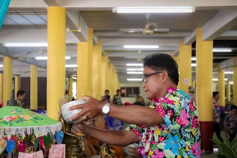ร่วมกิจกรรม สรงน้ำพระและรดน้ำขอพรผู้สูงอายุ ณ.วัดบุญเกิด หมู่ที่ ๓ ต.โพธิ์รังนก