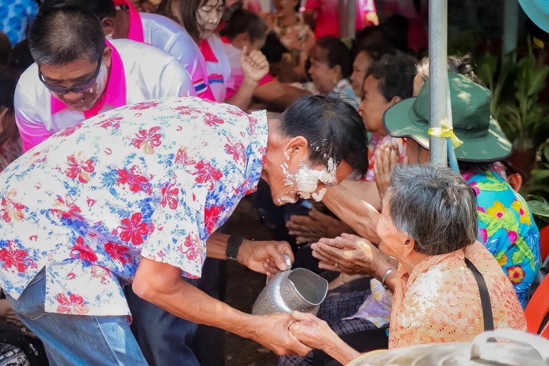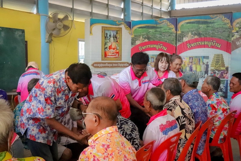 ร่วมกิจกรรมรดน้ำขอพรผู้สูงอายุ ณ.ศาลาสร้างสุข หมู่ที่ ๕ ต.บางพลับ อ.โพธิ์ทอง จ.อ่างทอง เพื่อเป็นขวัญกำลังใจให้กับผู้สูงอายุ และเพื่อความเป็นศิริมงคล เนื่องในโอกาสวันขึ้นปีใหม่ไทย เทศกาลสงกรานต์ ๒๕๖๙ นี้